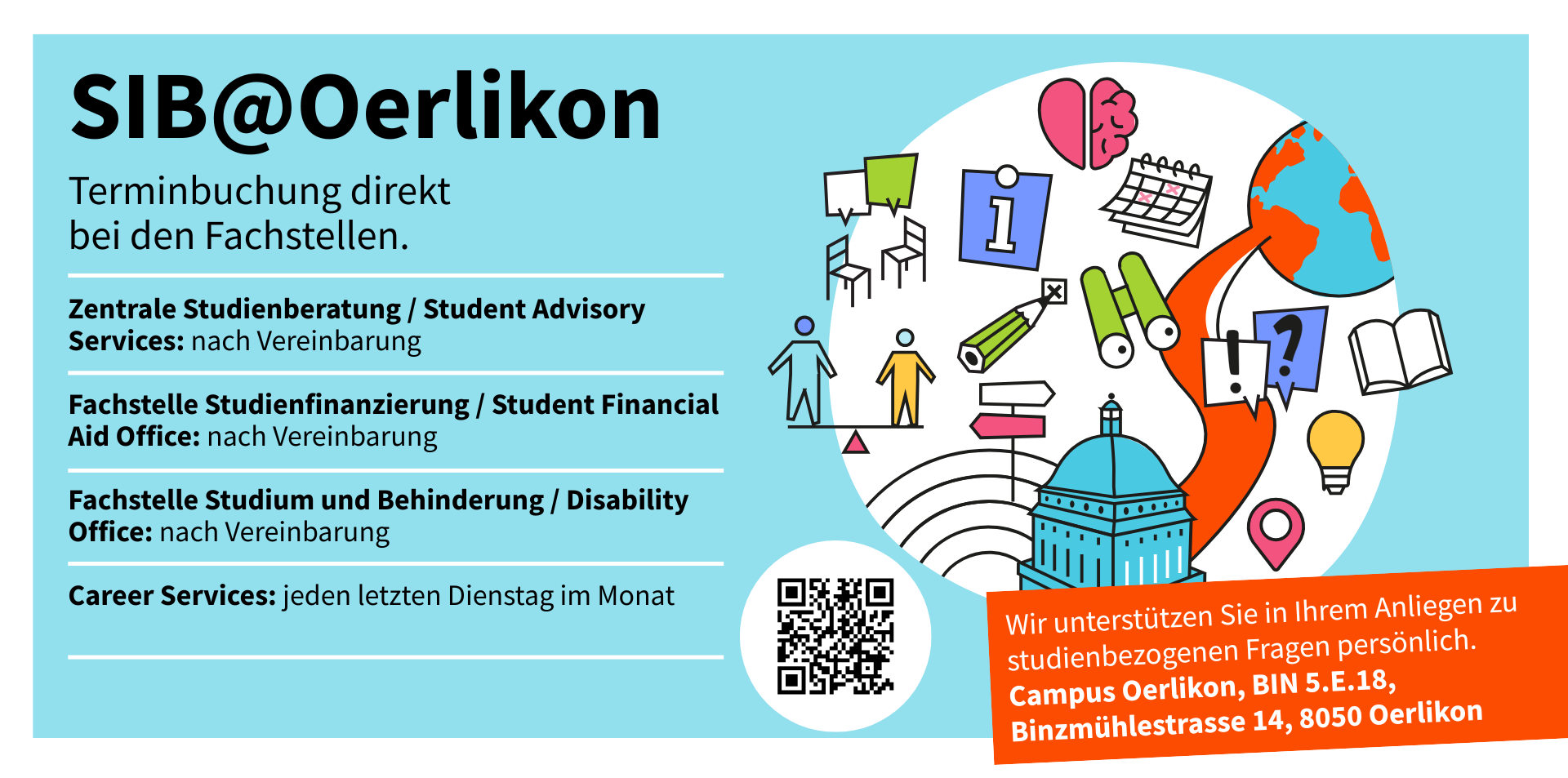 Die Fachstellen der Abteilung Studieninformation und Beratung (SIB) sind auch am Campus Oerlikon präsent: